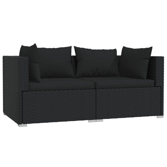 2-Personers Sofa Med Hynder Polyrattan Sort