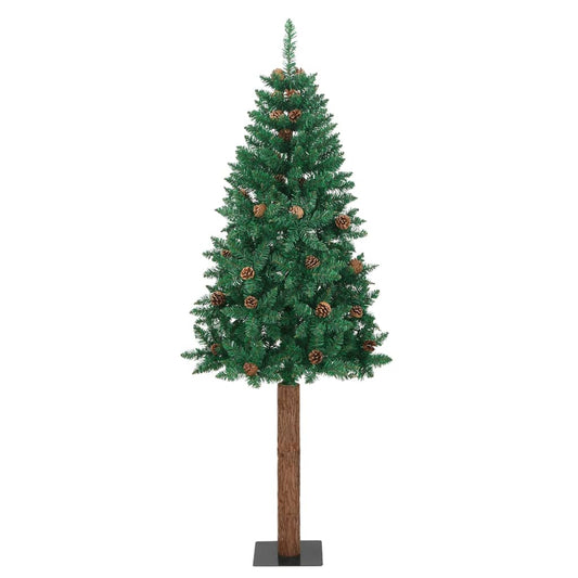 Smalt Juletræ Med Ægte Træ Og Grankogler 180 Cm Pvc Grøn