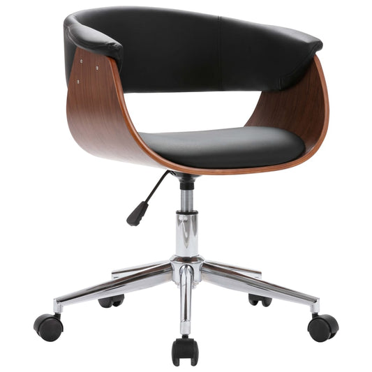 Drejelig Kontorstol Bøjet Træ Og Kunstlæder Sort