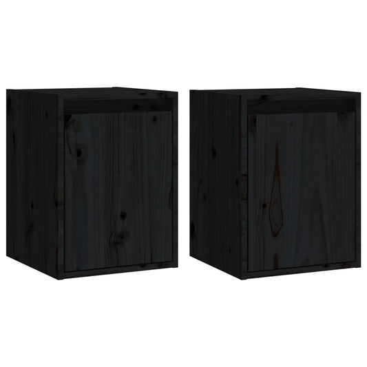 Vægskabe 2 Stk. 30X30X40 Cm Massivt Fyrretræ Sort