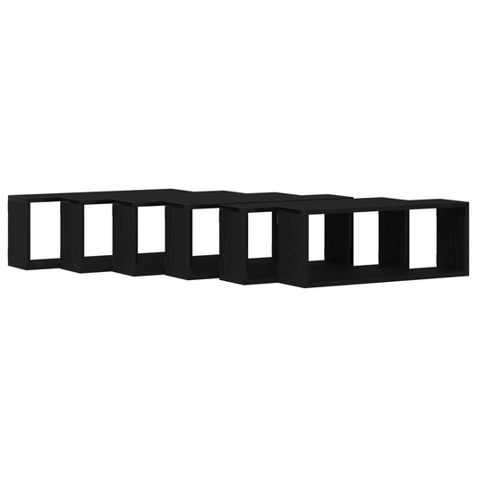 Væghylder 6 Dele Sort Eg 60 X 15 X 23 Cm Konstrueret Træ