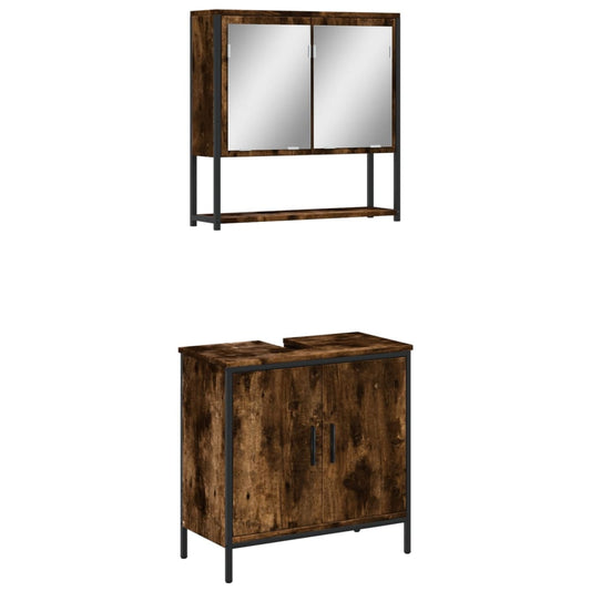 Møbelsæt Til Badeværelse 2 Dele Konstrueret Træ Brunt Egetræ