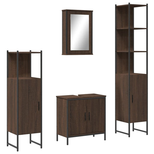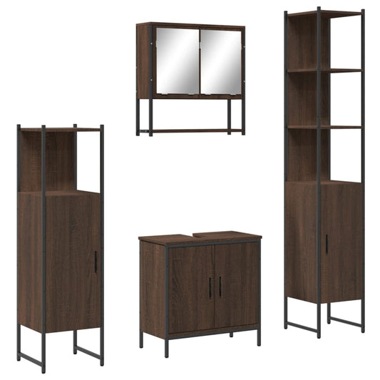 Møbelsæt Til Badeværelse 4 Dele Konstrueret Træ Brunt Egetræ