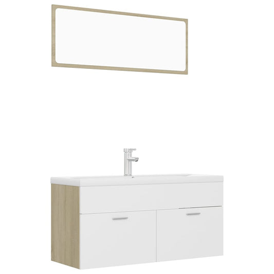Badeværelsesmøbelsæt Konstrueret Træ Hvid Og Sonoma-Eg