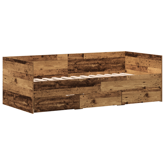 Sengestel Med Skuffer Gammelt Træ 90 X 190 Cm Konstrueret Træ
