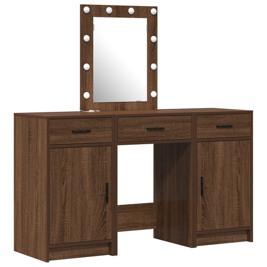 Makeupbord Sæt 2 Dele Røget Eg 50 X 41 X 135 Cm Konstrueret Træ