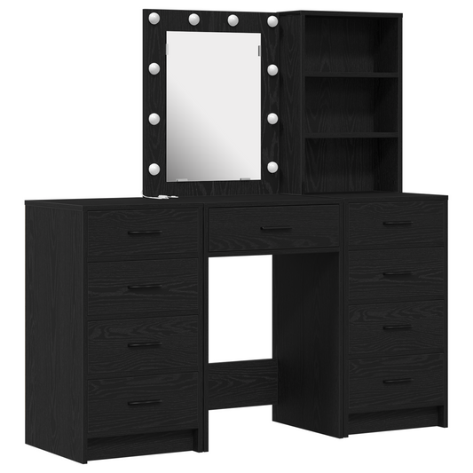 Sengestel Med Skuffer Sort Eg 135 X 190 Cm Konstrueret Træ