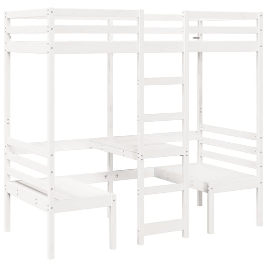 Højseng Med Skrivebord Og Stole 90X190 Cm Massivt Fyrretræ