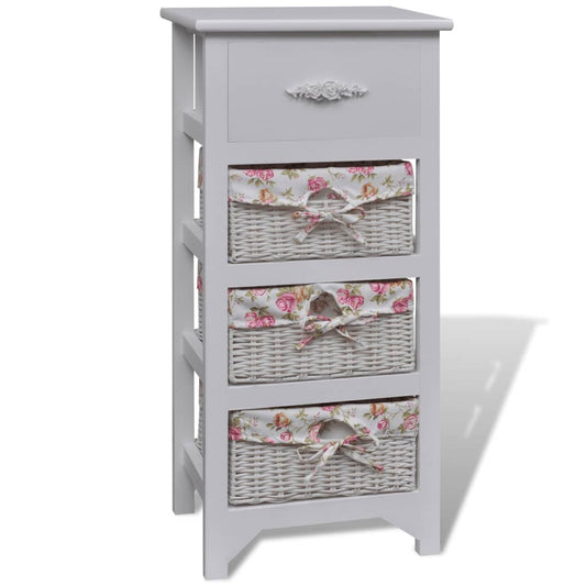 Reol Med 1 Skuffe Og 3 Kurve Kejsertræ Hvid