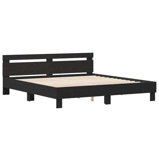 Sengestel Med Hovedgærde Sort Eg 180 X 200 Cm Konstrueret Træ