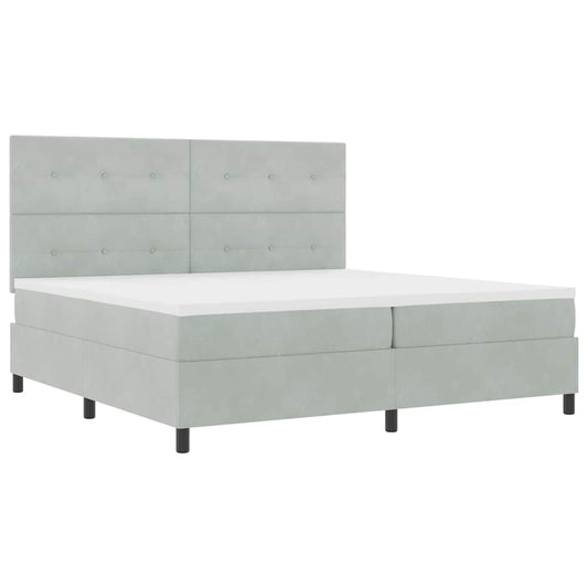 Box Spring Seng Med Madras Lysegrå 200 X 200 Cm Fløjl