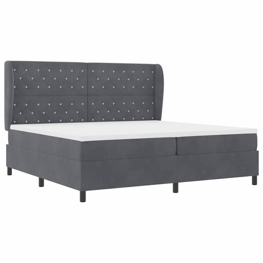 Box Spring Seng Med Madras Mørkegrå 200 X 200 Cm Fløjl