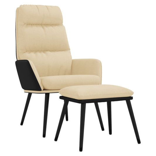 Lænestol Med Fodskammel Fløjl Og Pvc Cremefarvet