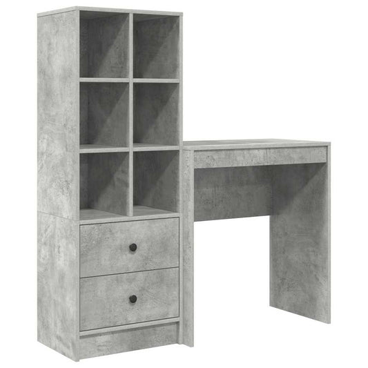 Skrivebord Med Opbevaring 2 Dele Beton Grå 45,5 X 34 X 127 Cm