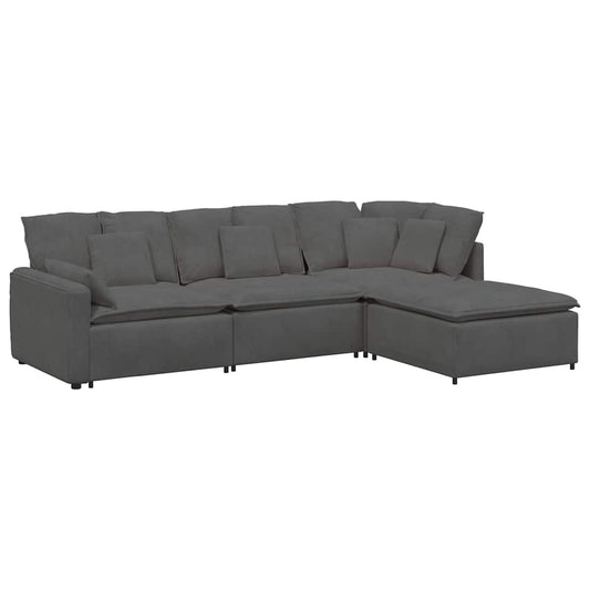 Modulsofa Med Fodskammel Og Hynder I Fløjlsstof