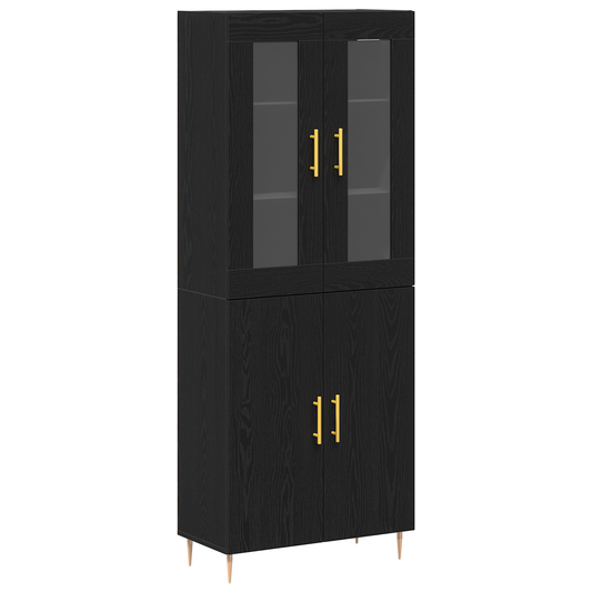Highboard 2 Dele Sort Eg 69,5 X 34 X 180 Cm Konstrueret Træ