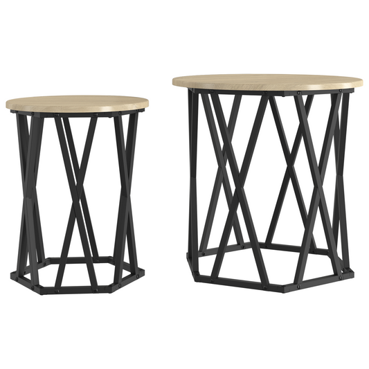 Sofabord 2 Dele Sonoma-Eg 50 X 50 X 50 Cm Ingeniørtræ Og Stål