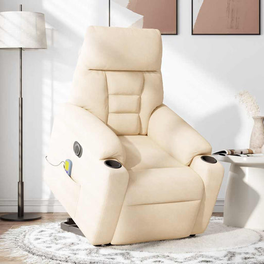 Massagestol Med Løftefunktion Mikrofiberstof Beige