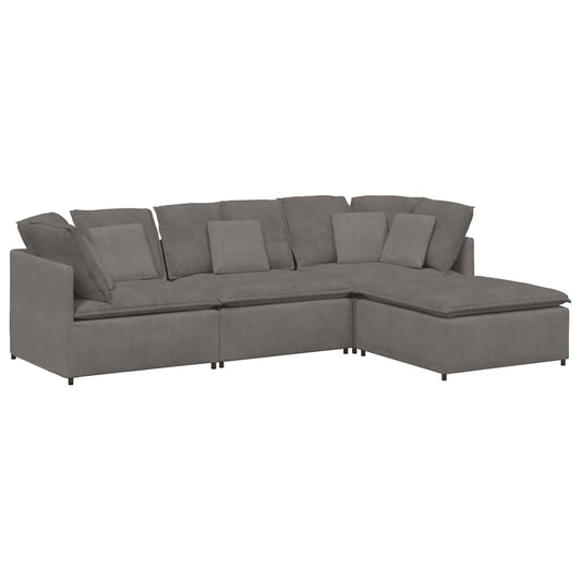 Modulsofa Med Fodskammel Og Hynder Føjlsstof Farvet