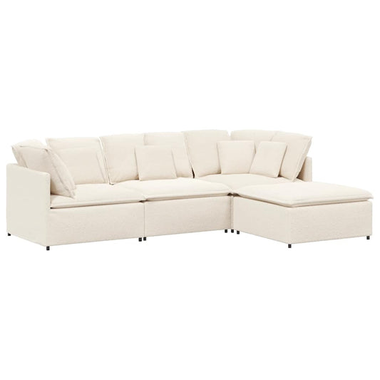 Modulsofa Med Fodskammel&Puder Krøllet Uldlignende Stof