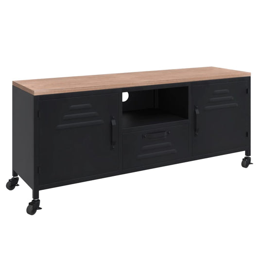 Tv-Bord 110X30X43 Cm Jern Og Massivt Fyrretræ Sort
