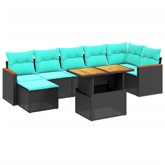 Sofasæt til Haven 7 Dele med Hynder Polyrattan Akacietræ Sort