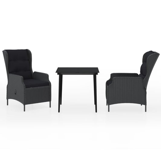 Bistrosæt til Haven 3 Dele med Hynder Polyrattan Sort