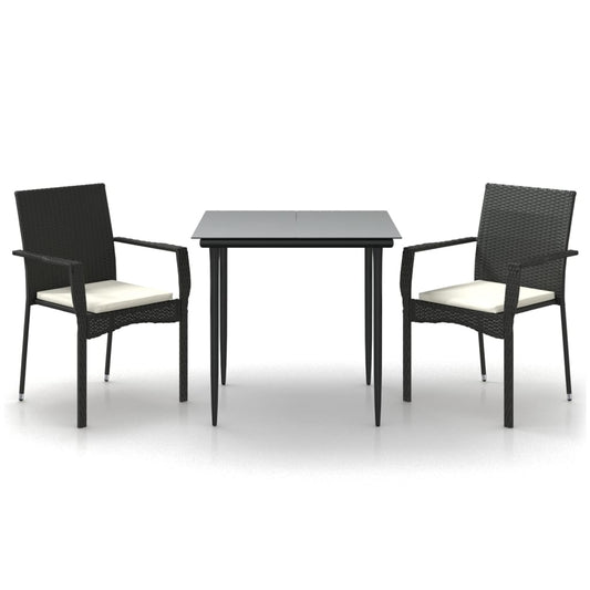 Udendørs Spisebordssæt 3 Dele Sort