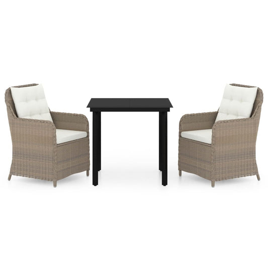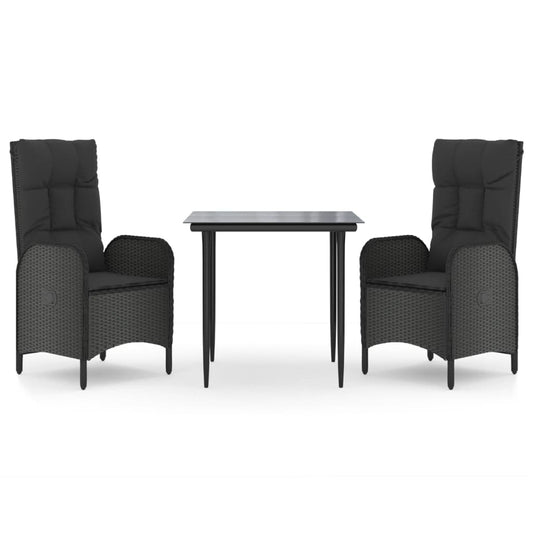 Udendørs Spisebordssæt 3 Dele med Hynder Sort