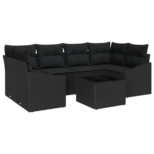 Havesofa Sæt Med Pude 7 Dele Sort Og Cream 55 X 55 X 37 Cm