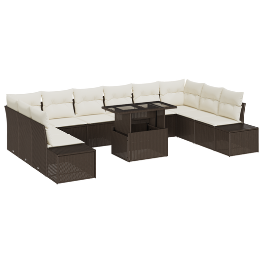 Havesofa Sæt 11 Dele Brun Og Cremefarvet 100 X 55 X 73 Cm