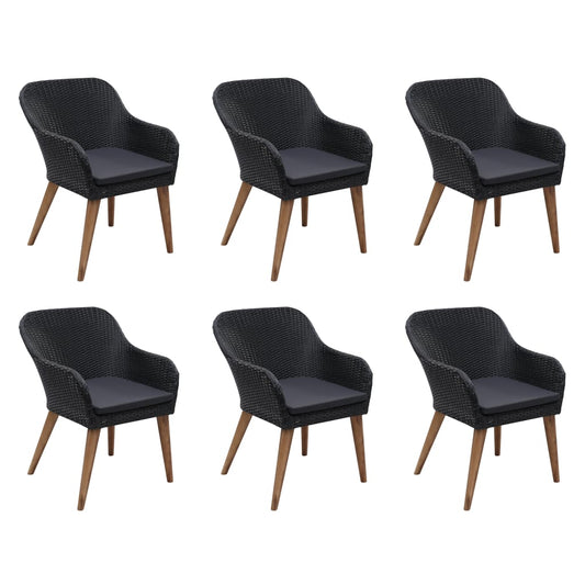 Spisebordssæt Til Haven 5 Dele Med Hynder Polyrattan Sort