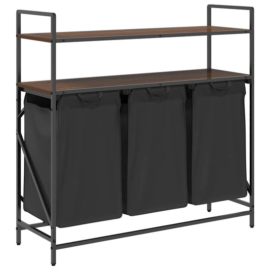 Vasketøjskurv 3 Rum Med Hylder Sort Egetræsfarve