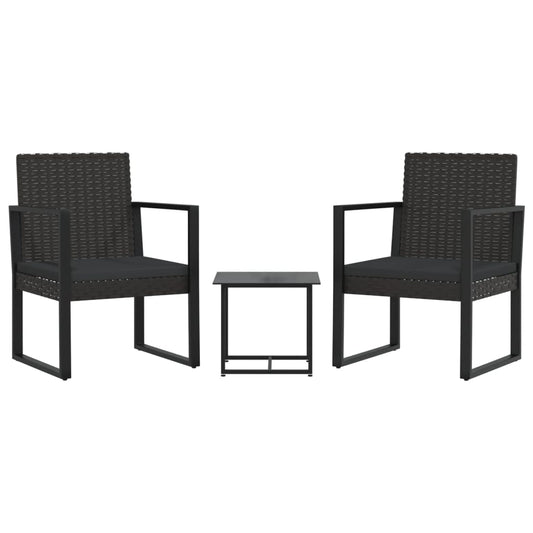 Loungesæt Til Haven 3 Dele Med Hynder Polyrattan Sort