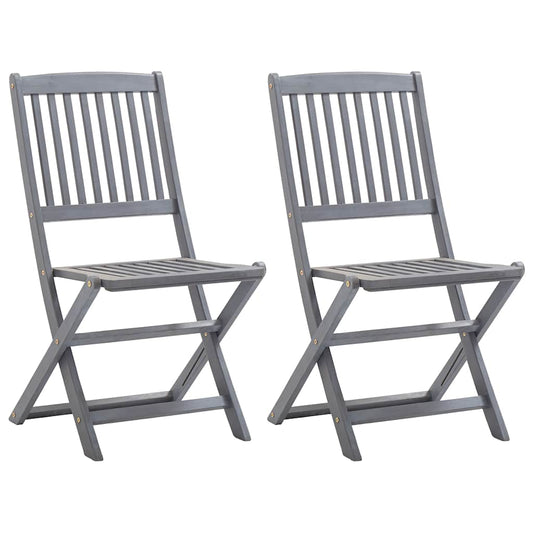 Foldbare Havestole Med Hynder Massivt Akacietræ Gråternet