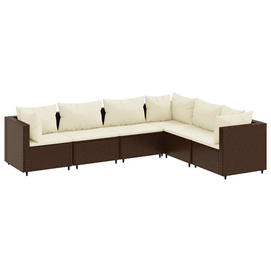 Loungesæt Til Haven 6 Dele Med Hynder Polyrattan Brun
