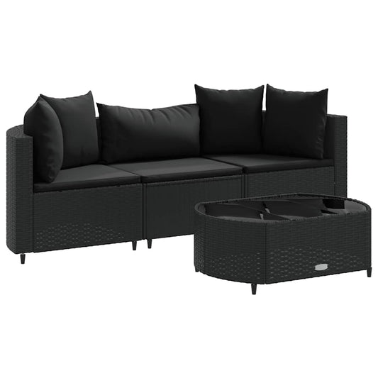 Sofasæt Til Haven 3 Dele Med Hynder Polyrattan Sort