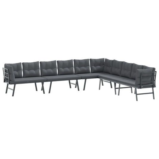 Havebænke 9 Dele Med Hynder Pulverlakeret Stål Sort
