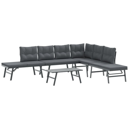 Havebænke 6 Dele Med Hynder Pulverlakeret Stål Sort
