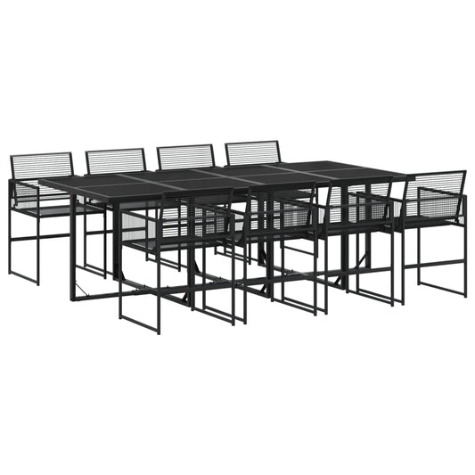 Spisebordssæt Til Haven 11 Dele Med Hynder Polyrattan Sort