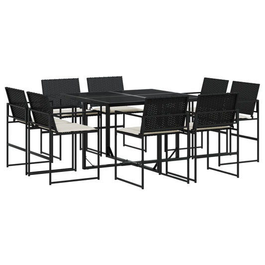 Spisebordssæt Til Haven 9 Dele Med Hynder Polyrattan Sort