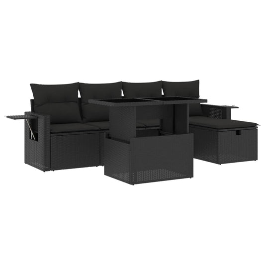 Sofasæt Til Haven 6 Dele Med Hynder Polyrattan Sort