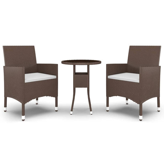 Bistrosæt Til Haven 3 Dele Polyrattan Og Hærdet Glas