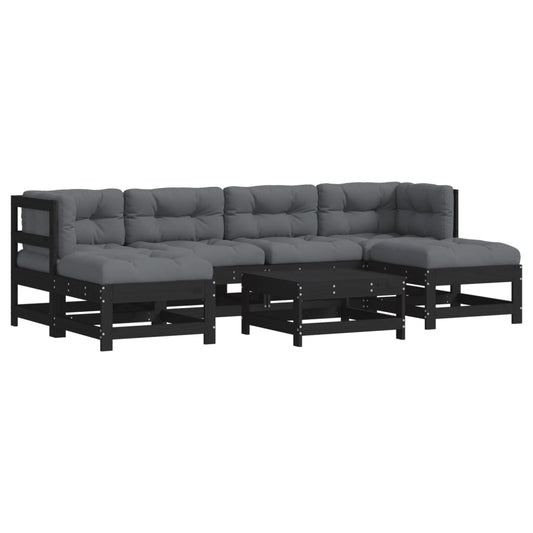 Loungesæt Til Haven 6 Dele Med Hynder Massivt Træ Sort