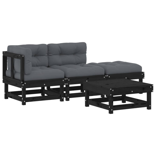 Loungesæt Til Haven 4 Dele Med Hynder Massivt Træ Sort