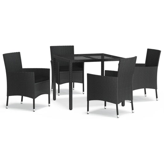 Spisebordssæt Til Haven 5 Dele Med Hynder Polyrattan Sort