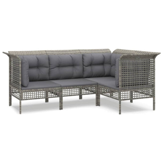 Loungesæt Til Haven 4 Dele Med Hynder Polyrattan Grå