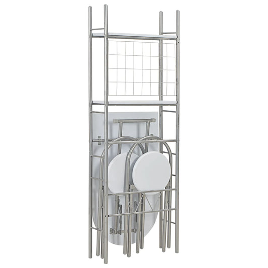 Foldbart Spisebordssæt Opbevaringshylde 3 Dele Mdf Og Stål Hvid