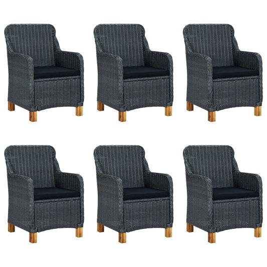 Udendørs Spisebordssæt 7 Dele Med Hynder Polyrattan Mørkegrå