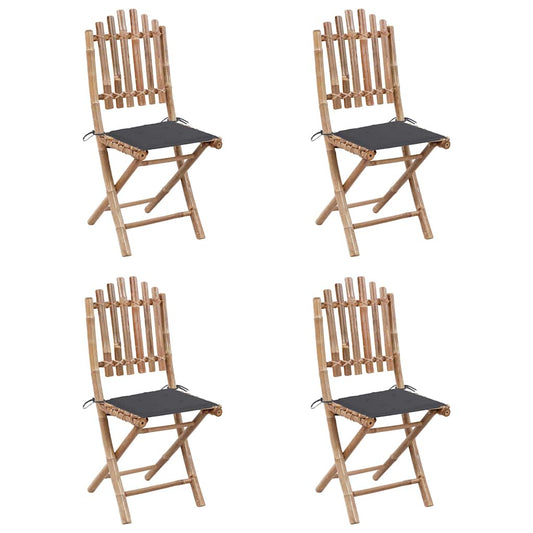 Udendørs Spisebordssæt 5 Dele Med Hynder Foldbart Bambus